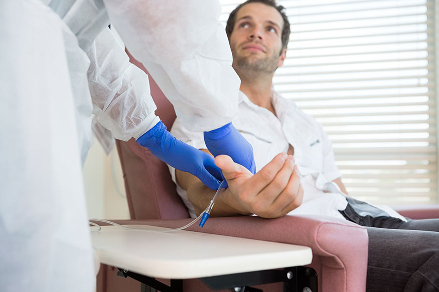 Tests and diagnosis 1. Physical exam: During a physical exam, your doctor may listen to your heart and your breathing. Your doctor may also place his or her hands on your abdomen to feel the size of your liver and spleen. 2. Complete blood count (CBC): A CBC is used to count the number of blood cells in a sample of your blood. For anemia, your doctor will be interested in the levels of the red blood cells contained in the blood (hematocrit) and the hemoglobin in your blood. Normal adult hematocrit values vary from one medical practice to another but are generally between 40 and 52 percent for men and 35 and 47 percent for women. Normal adult hemoglobin values are generally 14 to 18 grams per deciliter for men and 12 to 16 grams per deciliter for women. 3. A test to determine the size and shape of your red blood cells: Some of your red blood cells may also be examined for unusual size, shape and color. Doing so can help pinpoint a diagnosis. For example, in iron deficiency anemia, red blood cells are smaller and paler in color than normal. In vitamin deficiency anemias, red blood cells are enlarged and fewer in number.